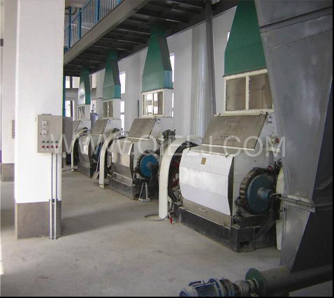 7.我公司還在軋胚工序的后面加上大豆膨化工序,對豆胚進行膨化,以進一步破壞油料細胞的結構,大大提高產量,得到受飼料廠家歡迎的膨化粕。